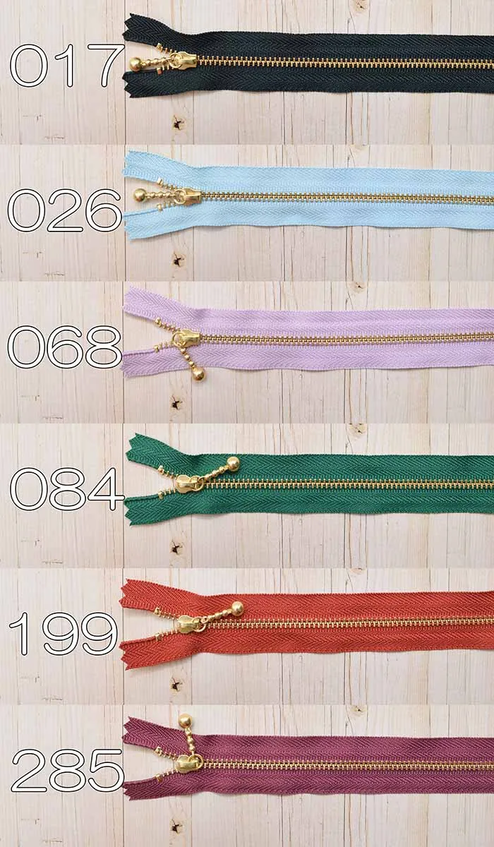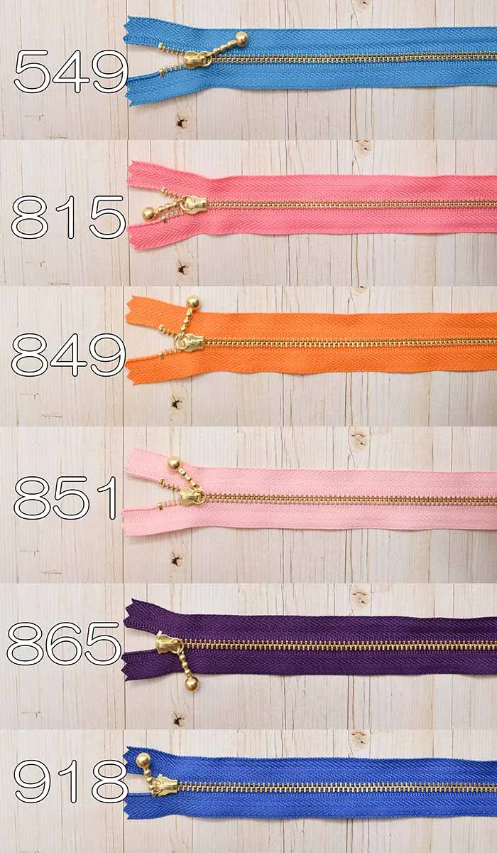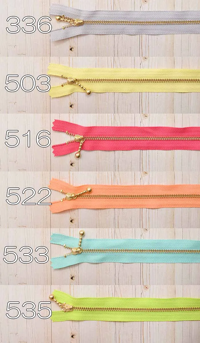 YKK金属ファスナー玉付き 3号サイズ 20cm【オリジナルカラー:ゴールド】