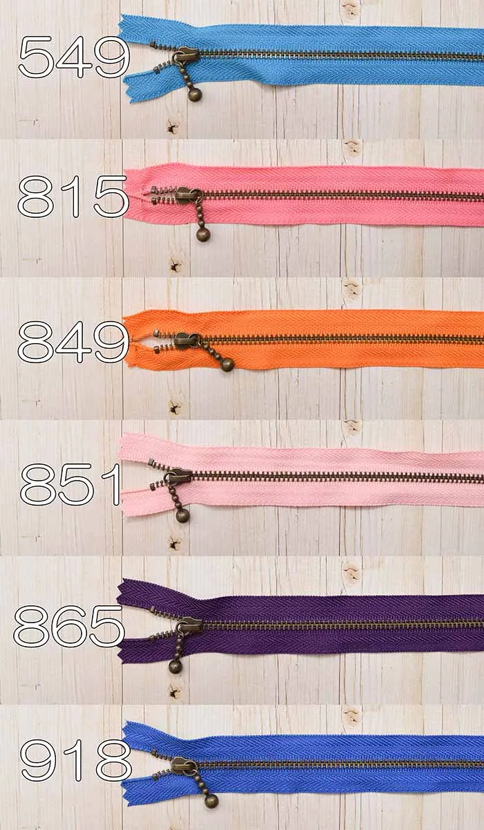YKK金属ファスナー玉付き 3号サイズ 20cm【オリジナルカラー:アンティークゴールド】