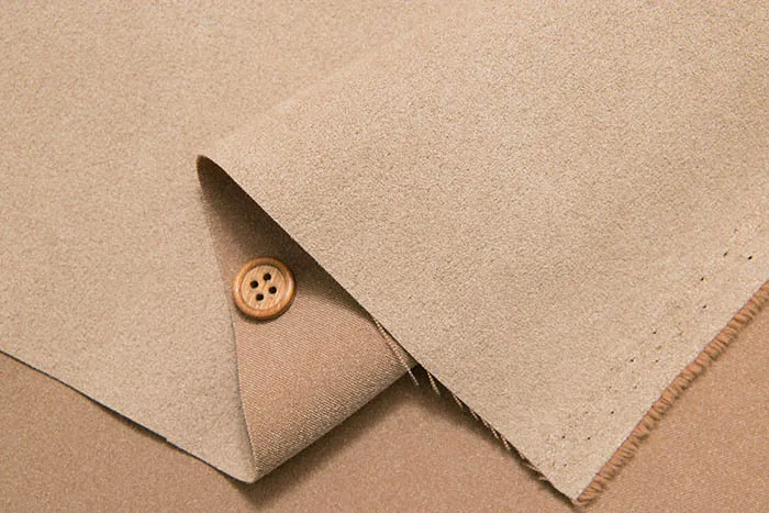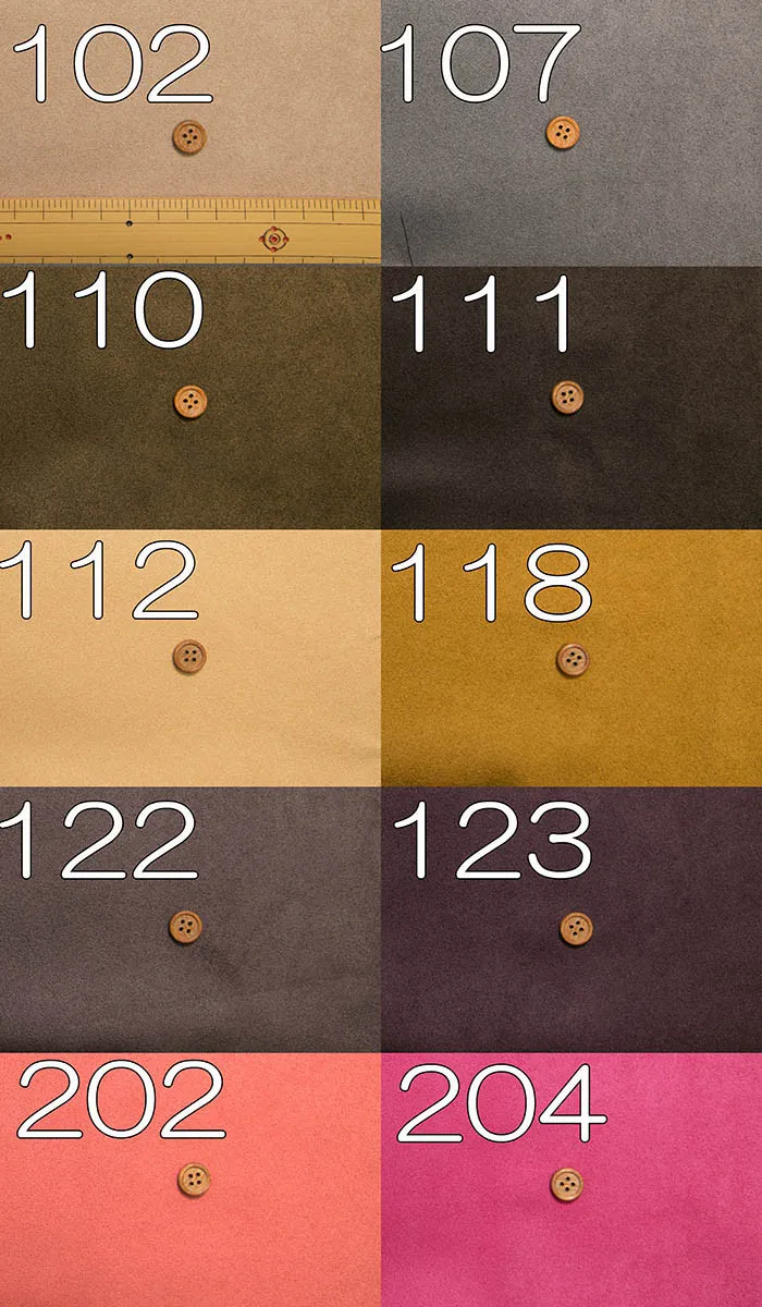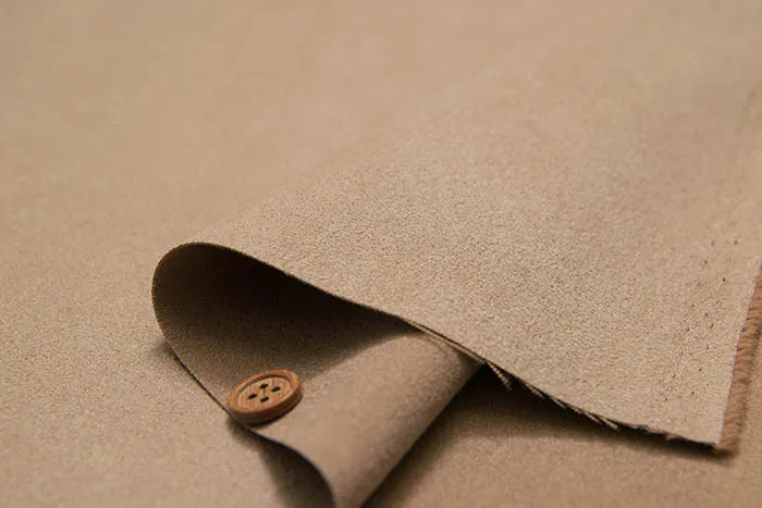 生地表面の滑らかな毛足と、生地自体の柔らかさは上質なバックスキンのようなフェイクスエード生地です。