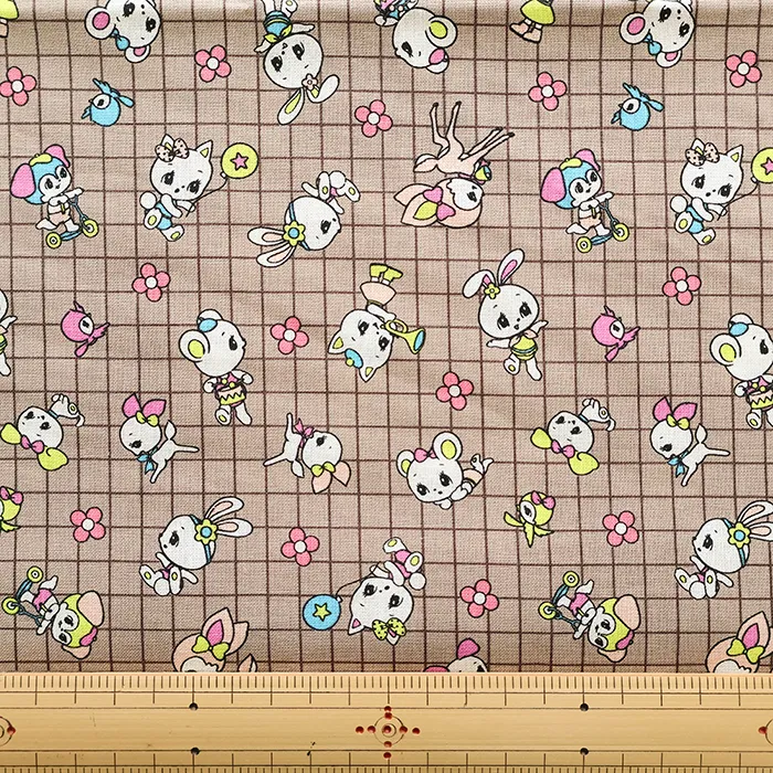 ≪50cmカットクロス≫コットンシーチングプリント生地 プチフレンズチェック