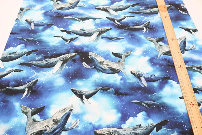 ≪50cmカットクロス≫コットンシーチングインクジェットプリント生地 くじら