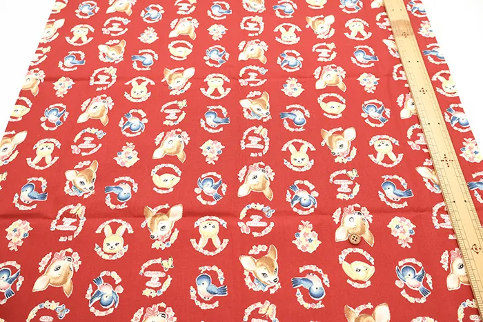 ≪50cmカットクロス≫コットンシーチングプリント生地 レトロバンビ
