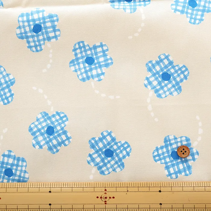 ≪50cmカットクロス≫コットンオックスプリント生地 チェックフラワー