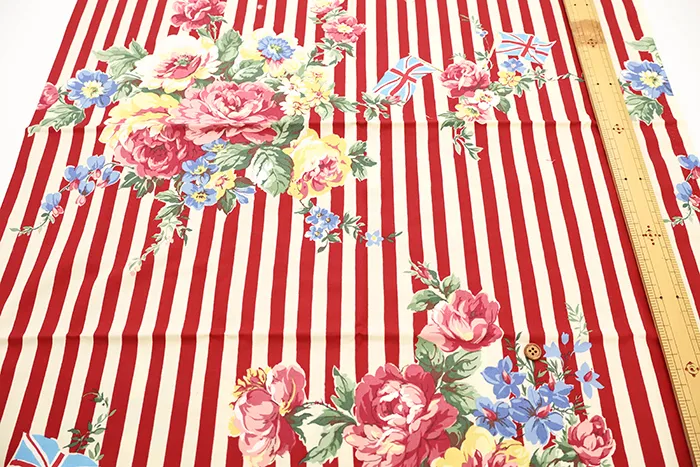 ≪50cmカットクロス≫コットンシーチングプリント生地 フラワーストライプ