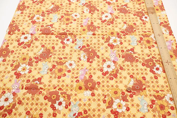 ≪50cmカットクロス≫コットンシーチングプリント生地 フラワーラビット