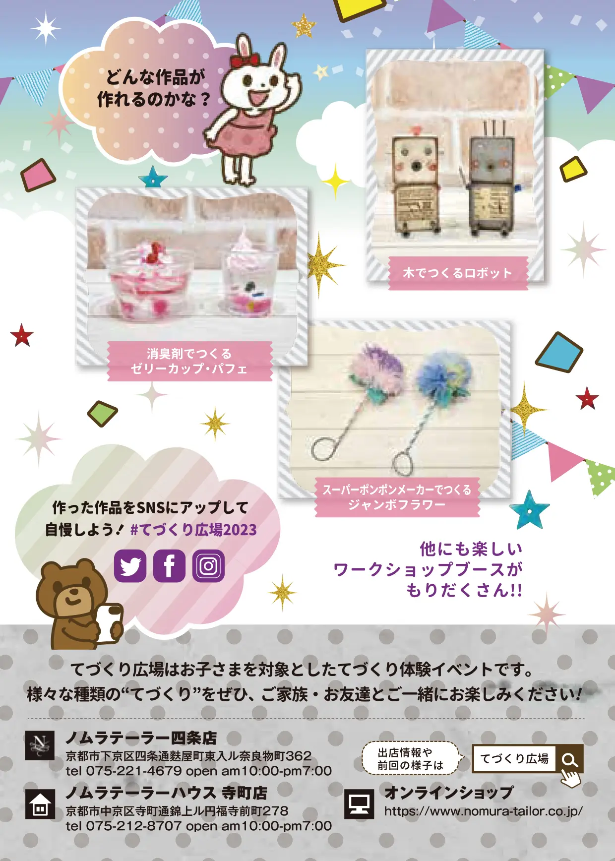 ノムラテーラー主催のこども向けてづくり体験イベントです。
