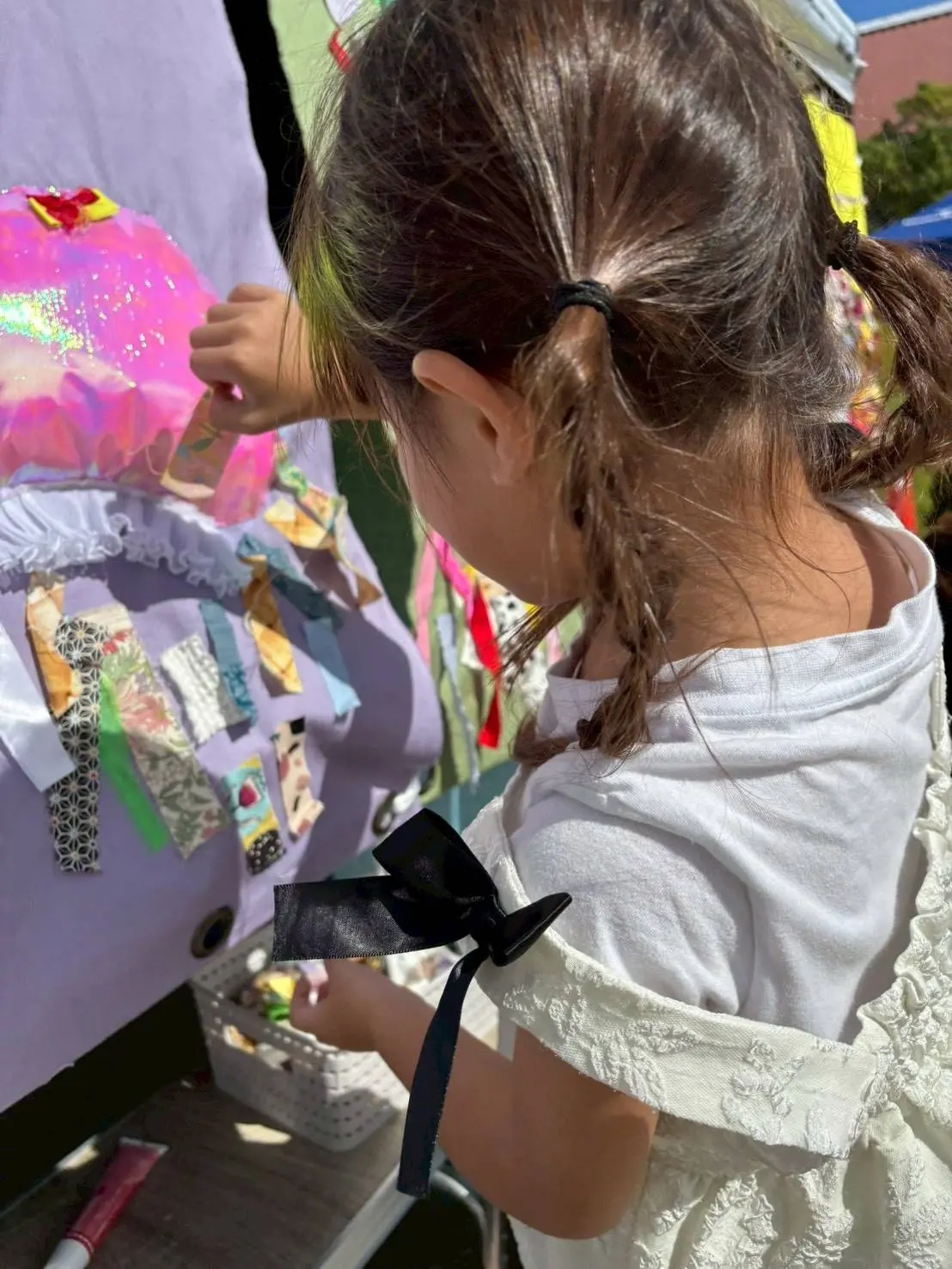 《ペタペタタペストリー》はてづくり広場で毎年行っている、生地をタペストリーに貼ってみんなで作品を作り上げる企画のひとつです。