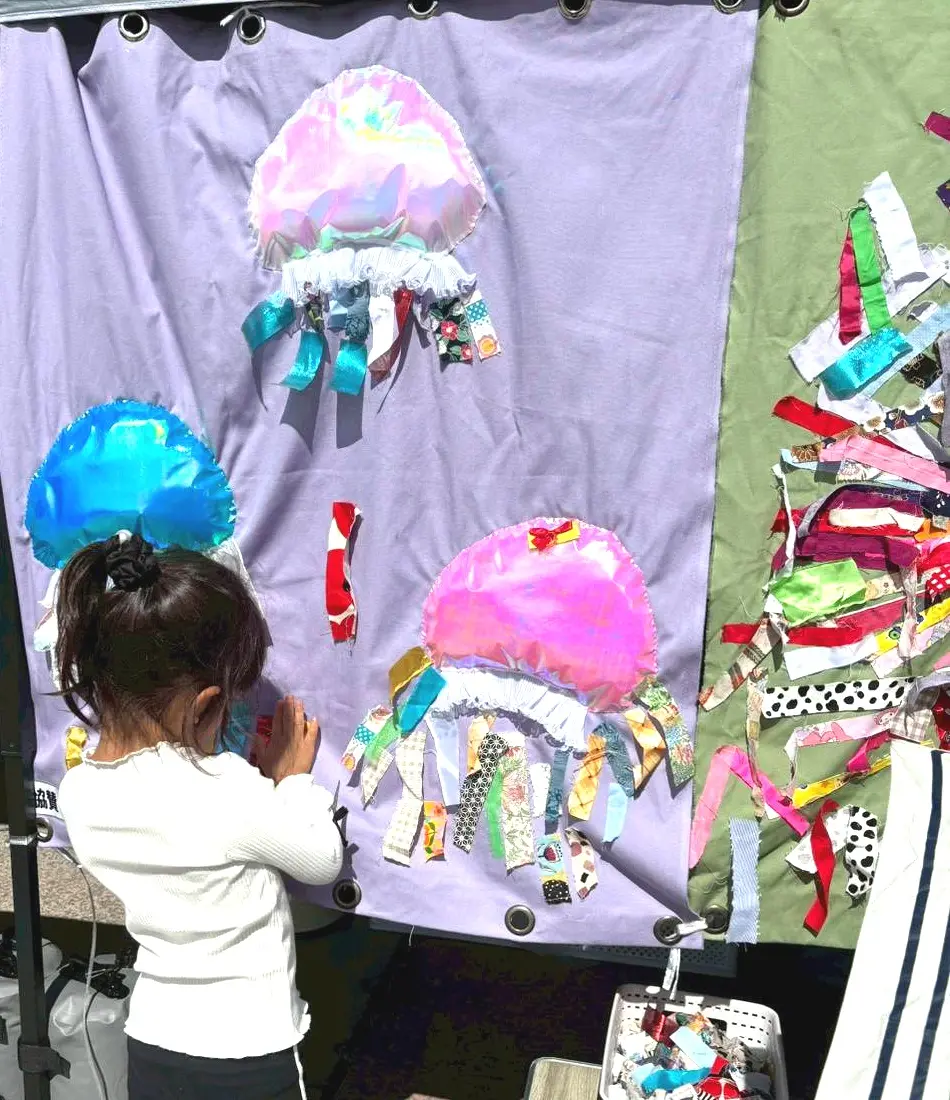 10月13日(月・祝)に宇治市・太陽が丘で開催された「こどもちずカップ」に、今回も《ペタペタタペストリー》の提供をさせていただきました。